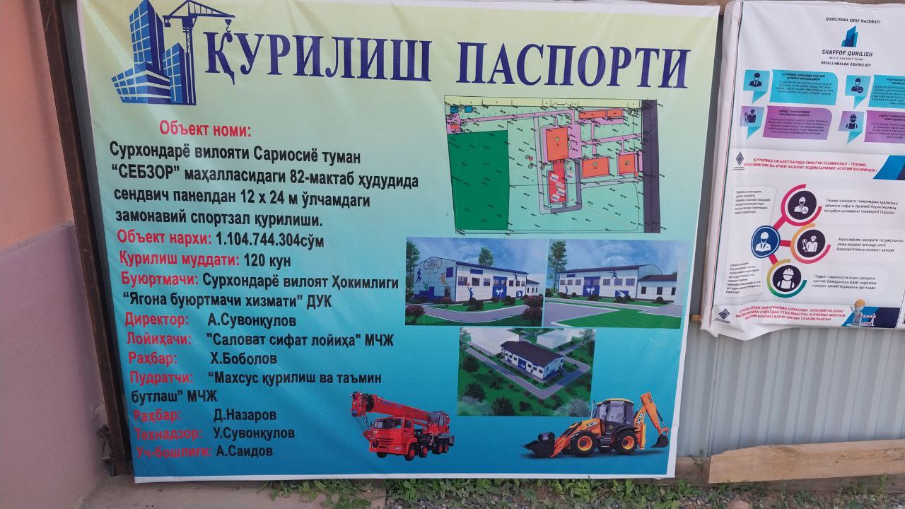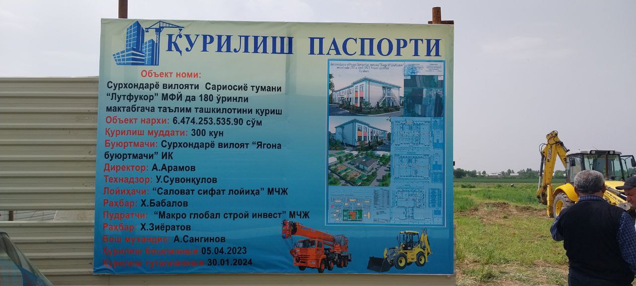 Объект строительства дошкольной образовательной организации на 180 мест в МФУ «Лутфукор» Сариосийского района